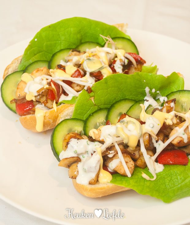Voor een slanke variant maak je knoflooksaus van yoghurt en vervang je de kaassaus door smeerkaas light! 🙂
