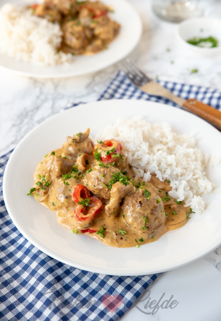 De basis voor dit gerecht zijn de kliekjes vlees en groenten die je overhebt van je gourmet, die worden even aangebakken en zachtjes gegaard in een heerlijke roomsaus. Als je ook (voorgekookte) krieltjes toevoegt, maak je er een eenpansgerecht van. Heb je geen krieltjes, dan kun je dit gerecht serveren met bijvoorbeeld gekookte rijst, gebakken aardappels, pasta, of iets anders dat je nog in huis hebt. Ik zeg: “trek open die kastdeuren en maak op die kliekjes!”