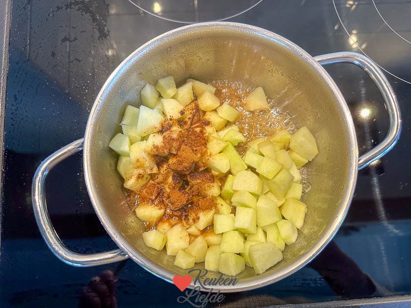 - 4 friszoete appels (bijv. Elstar of Goudreinet), geschild en in blokjes