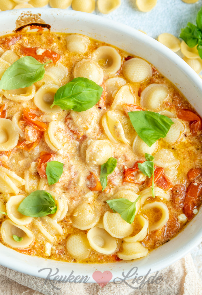 Volgens mij heeft heel Nederland deze populaire TikTok pasta al een keer gemaakt. Ik ben niet zo van de hypes en over deze pasta was ik eerst een beetje scepsis. Toch won mijn nieuwsgierigheid het en besloot ik hem te maken. Het recept is supermakkelijk. Makkelijker dan dit wordt koken echt niet. Ik schrok wel van de eerste hap. Zo zuur! Gelukkig was dat makkelijk op te lossen met een flinke kneep honing. Dat maakt de smaken zachter en ronder en echt lekker als je het mij vraagt. Hoeveel honing je toevoegt is afhankelijk van welke feta je gebruikt. De ene is namelijk zuurder dan de andere. Zie ook de onderstaande variatietips!