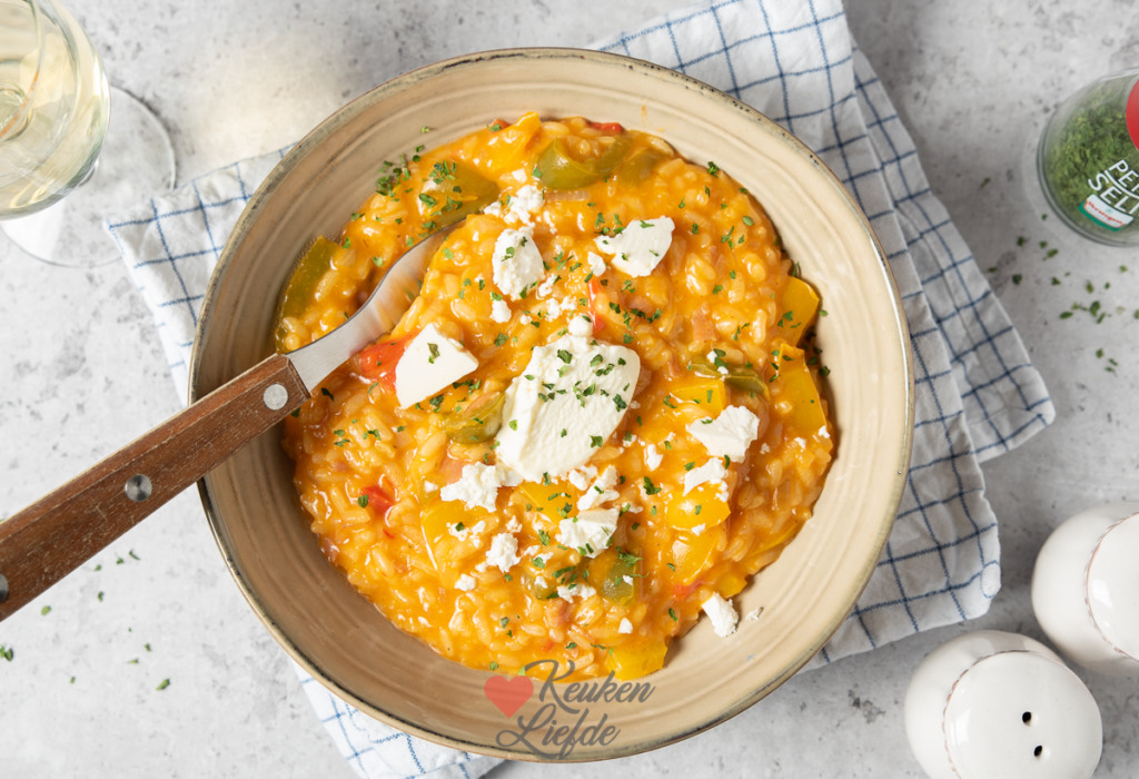 - 3 paprika’s, schoongemaakt en in kleine blokjes