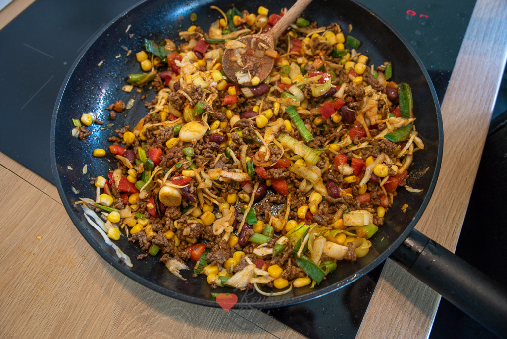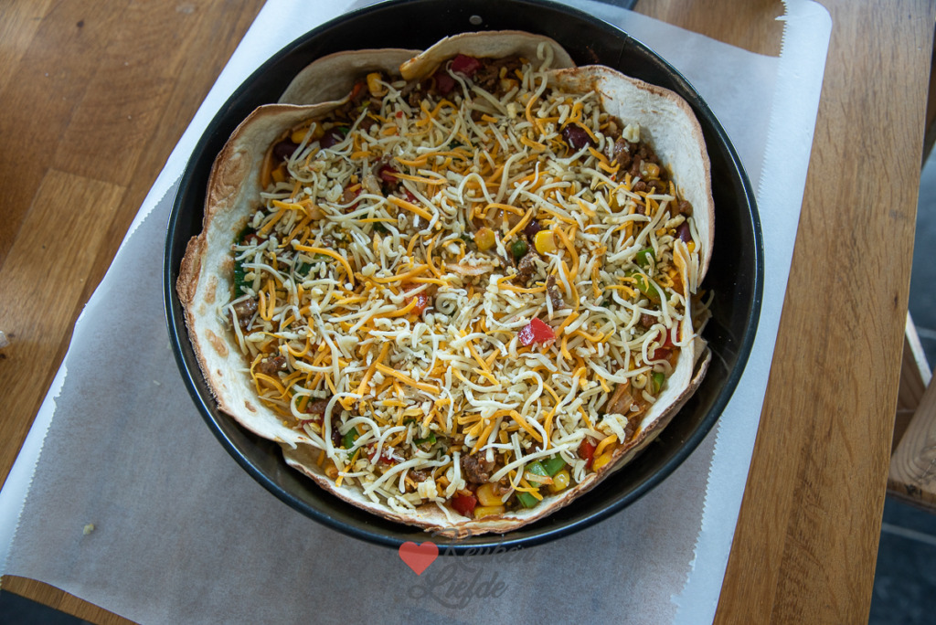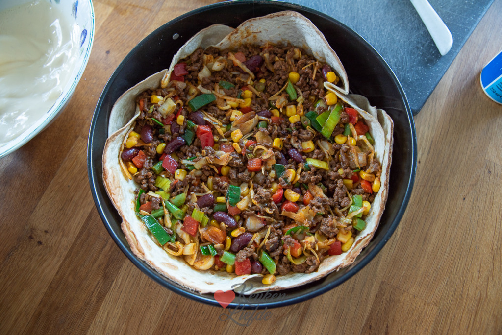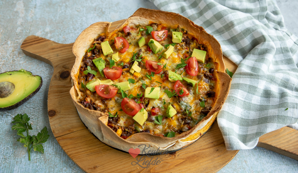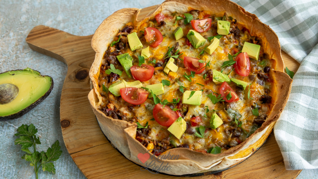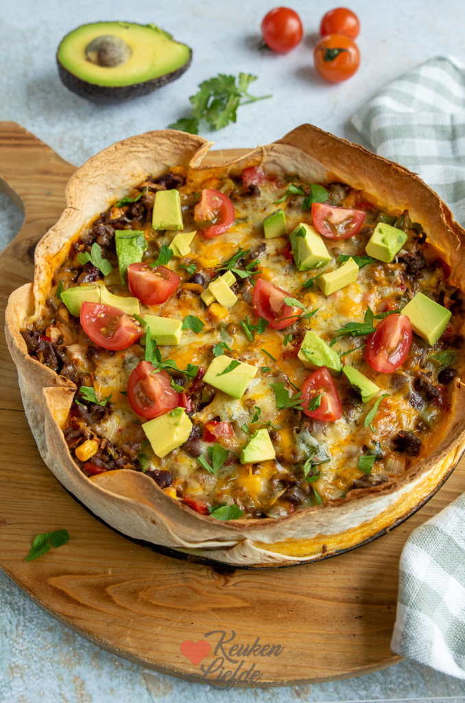 Tortillataart met gehakt en groenten