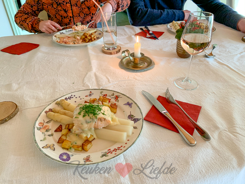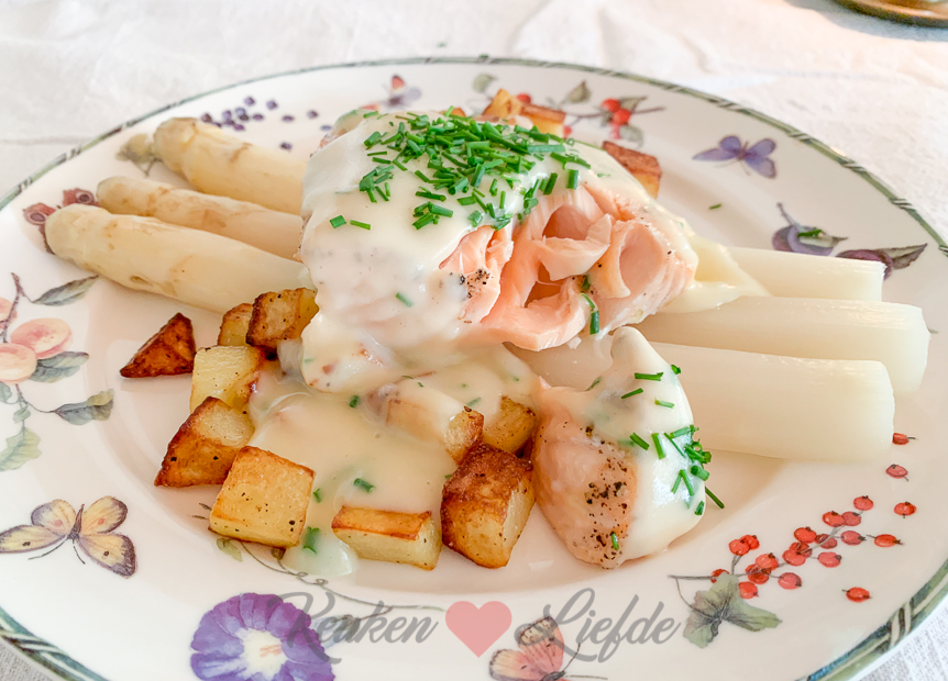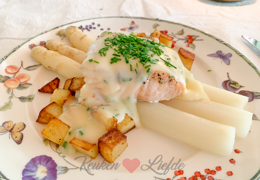 Witte asperges met zalm en zelfgemaakte aspergesaus