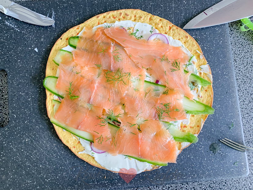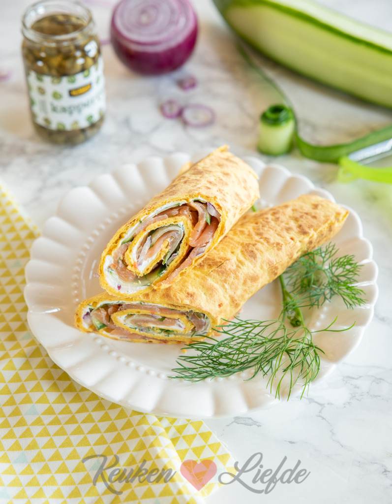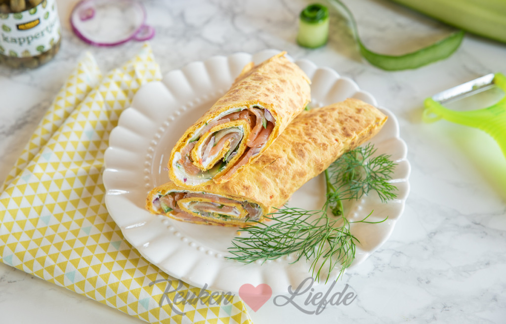 Een heerlijke wrap belegd met roomkaas, komkommer en gerookte zalm! Lekker als lunch of snijd in kleine rolletjes en serveer als hapje.