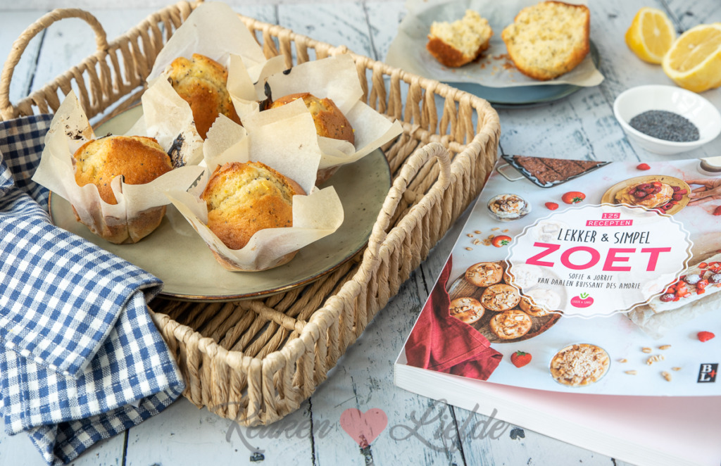 Deze yoghurt citroen muffins komen uit het kookboek Zoet van Sofie en Jorrit van Lekker & Simpel: een laagdrempelig en ongecompliceerd boek met maar liefst 125 zoete recepten! ‘Als het ons zelfs lukt om deze bakrecepten te maken, dan kunnen jullie dat zeker ook’, schrijven Sofie en Jorrit in hun voorwoord. En daarmee is de toon voor het boek gezet. Zoet is alweer het vijfde kookboek van hun hand, maar hun eerste boek met uitsluitend zoete recepten. Nadat ik het boek op mijn gemak heb doorgebladerd heb ik zin om de keuken in te gaan. Bijna alle recepten hebben een korte ingrediëntenlijst en eenvoudige bereiding en zijn hierdoor heel uitnodigend om te maken. Ook fijn: het boek heeft een softcover en middelklein formaat en ligt hierdoor lekker in de hand.