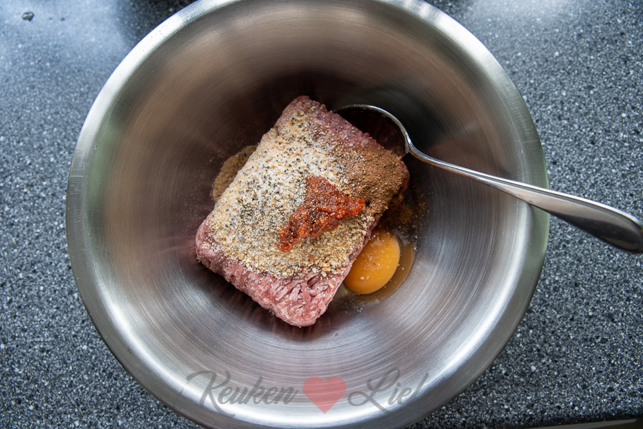 Als je het wat pittiger wil maken zou ik theelepel kerrie en theelepel komijn toevoegen en evt. teentje knoflook. en handje gehakte peterselie erdoor.