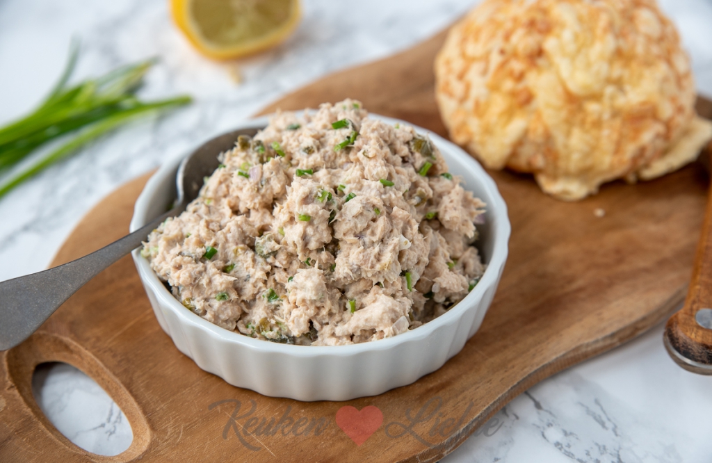 Laat de zalm goed uitlekken en doe in een kom. Prak de zalm los met een vork.