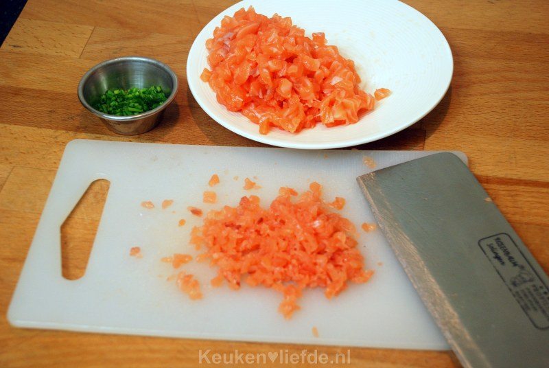 Visliefhebbers opgelet! Ik heb namelijk weer een heerlijk visrecept voor jullie. Deze zalmtartaar is gemaakt van verse en gerookte zalm en heeft daardoor een zachte en subtiele vissmaak. Serveer met wat knapperig geroosterd brood als elegant borrelhapje, of serveer als feestelijk voorgerecht met wat rucola, kappertjes en in de oven gepofte cherrytomaat. Genieten!