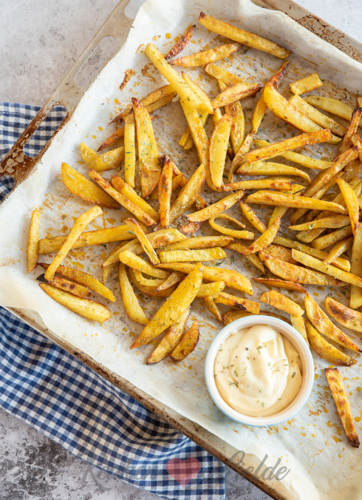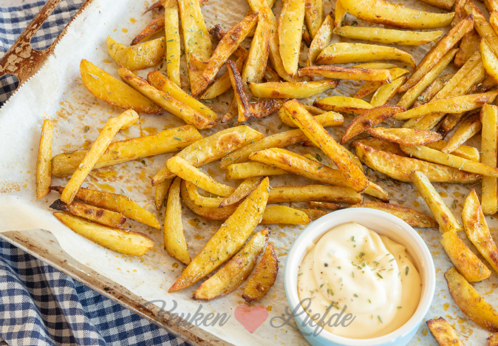 Goudgele verse ovenfrietjes zelf maken? Het is kinderlijk eenvoudig. De oven doet eigenlijk al het werk, jij hoeft de aardappels alleen te schillen, in frietjes te snijden (de dikte bepaal je lekker zelf) en te kruiden. Lekker om te serveren met deze krokant gebakken speklapjes en een groene salade.