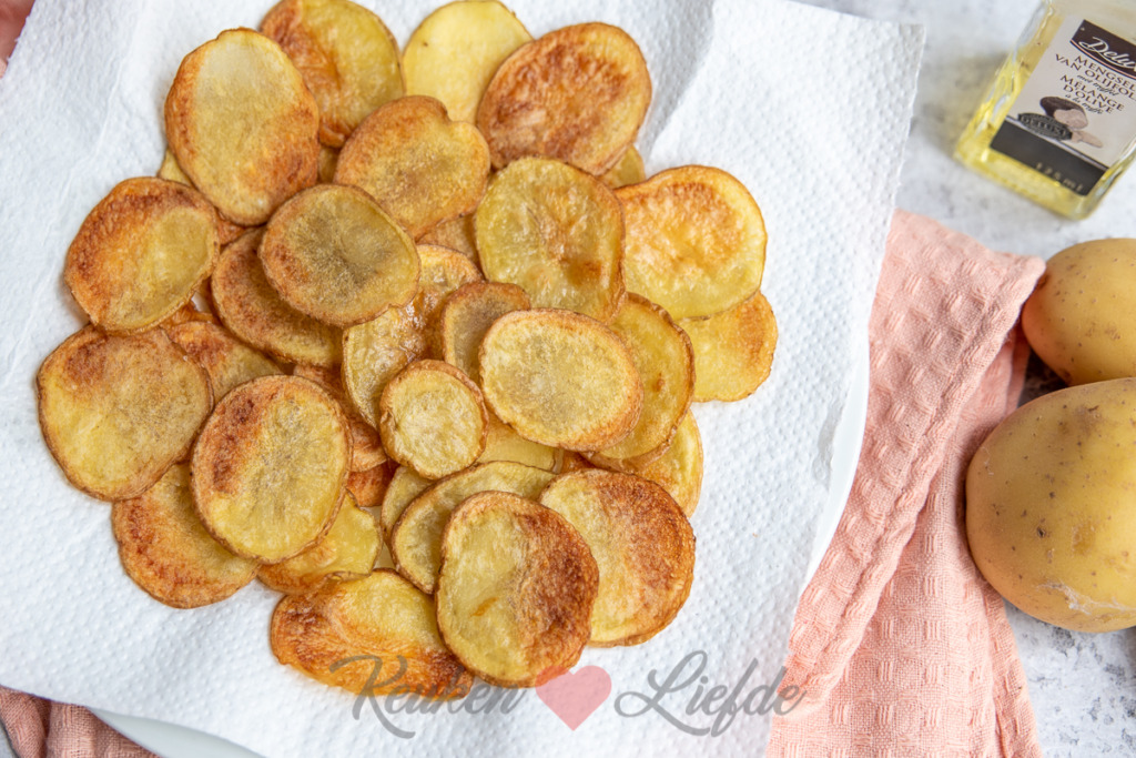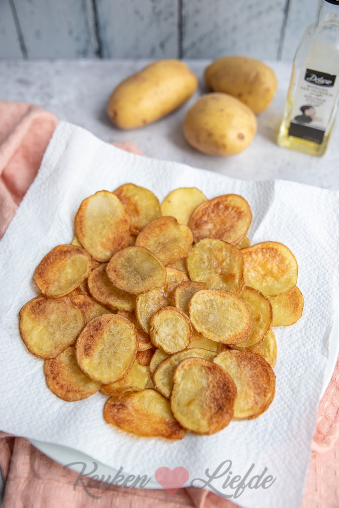 Zelf chips maken is lekker en heel eenvoudig. Met maar twee ingrediënten maak je deze heerlijke truffelchips. Frituurolie heb je niet nodig, want deze krokante rakkers maak je gewoon in de oven. Hoe dunner de aardappel gesneden is, hoe beter het resultaat.
