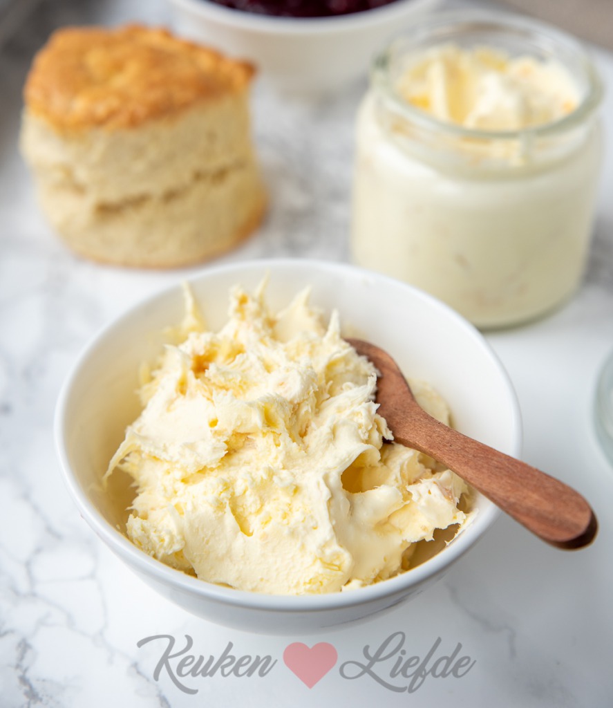 Scones met clotted cream en jam; ze mogen niet ontbreken bij een Engelse high tea. Maar wij zijn er ook dol op! Nu zijn scones gelukkig heel makkelijk zelf te maken (dit recept!). Maar ook clotted cream kun je makkelijk zelf maken. Vergeet al die snelle clotted cream varianten gemaakt met mascarpone; die halen het qua smaak niet bij het origineel. Voor de enige echte én allerlekkerste clotted cream heb je alleen slagroom nodig. En een beetje liefde en geduld. 🙂 Waar wacht je nog op? Hup, aan de slag!