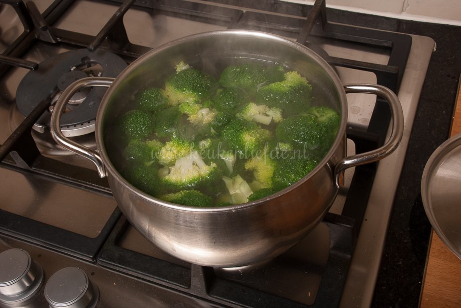 Kook de zilvervliesrijst beetgaar volgens de omschrijving op het pak. Giet af en laat uitlekken. Schil de broccolistronk en snijd in plakjes. Snijd de broccoliroosjes los. Kook de broccoliplakjes en de roosjes in licht gezouten water beetgaar. Giet af en laat goed uitlekken.
