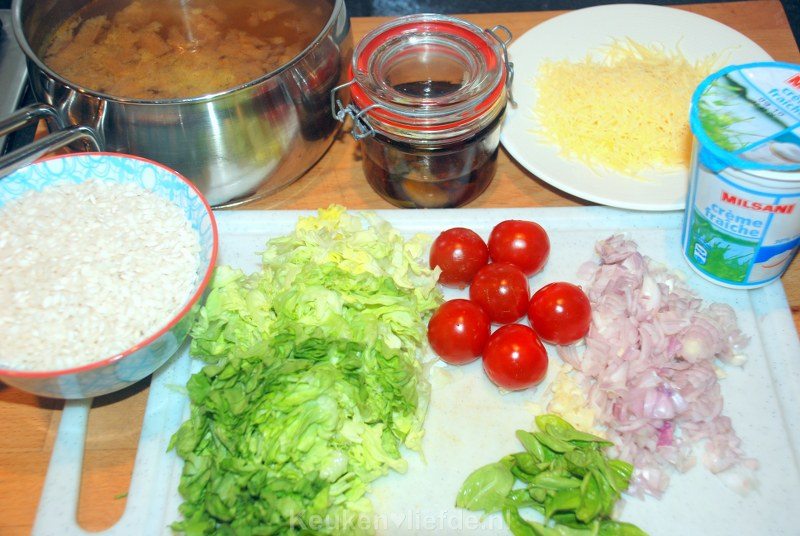 Vervang de kippenbouillon door groentebouillon en geniet van een heerlijke vegetarische risotto!