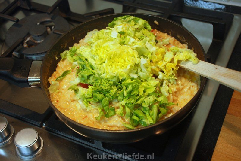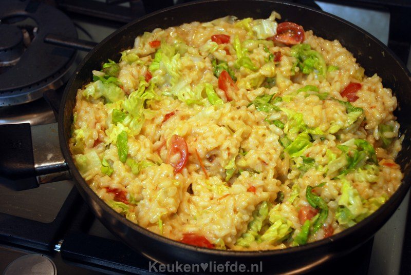 Risotto met zongedroogde tomaat en sla