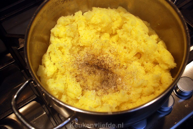 Maak de puree smeuïg met de melk en boter en breng goed op smaak met zout en peper (liefst vers uit de molen!).