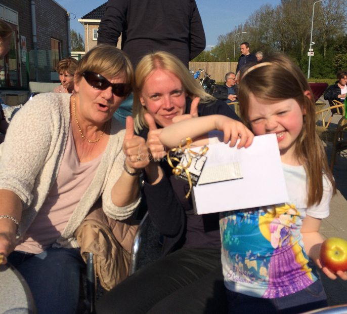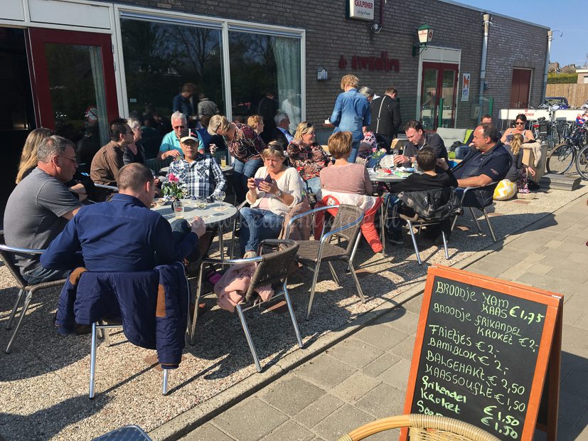 Het is hartstikke lekker weer en we besluiten om mee te doen met de fietspuzzeltocht die de oranjevereniging Kerk-Avezaath organiseert. Johan zijn moeder fiets ook met ons mee. Johan ziet het woord al als we halverwege zijn. Slimmerik! De rest van de fietstocht hoeven we dus niet meer op te letten en genieten we vooral van de omgeving en van het mooie weer. Halverwege de rit is er een stop ingelast om wat te eten en te drinken. Eenmaal neergestreken op het terras in de zon willen we niet meer weg.