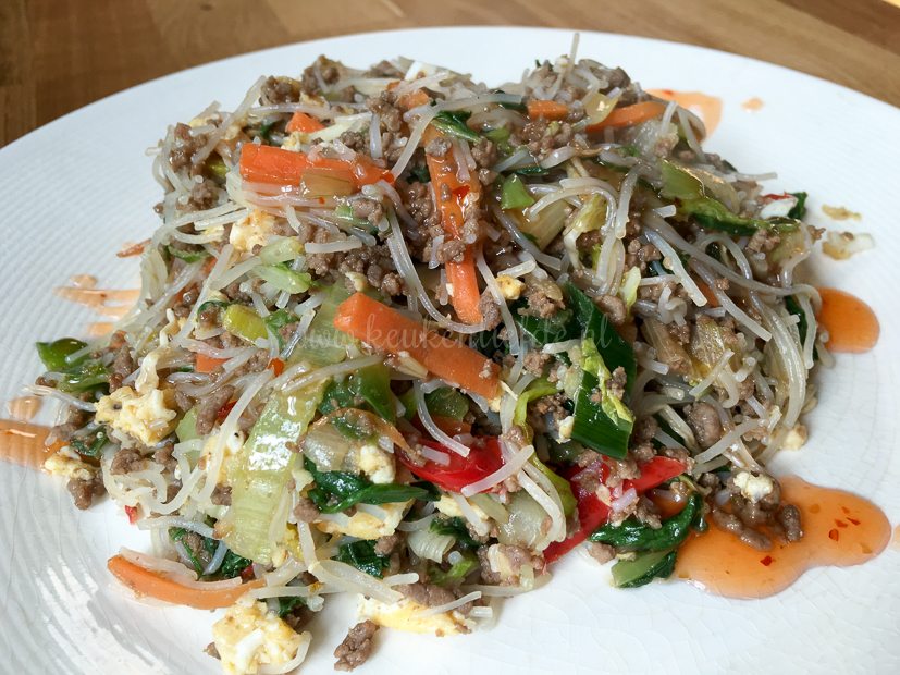 Ella-Marie logeert tot morgen bij mijn schoonouders en zo kan ik weer even een dagje werken. Ik haal ’s ochtends een bak mihoen uit de diepvries van de afhaalchinees. Met wat extra groenten, gehakt en roerei maak ik daar ’s avonds een lekker maaltje mee.