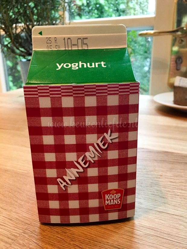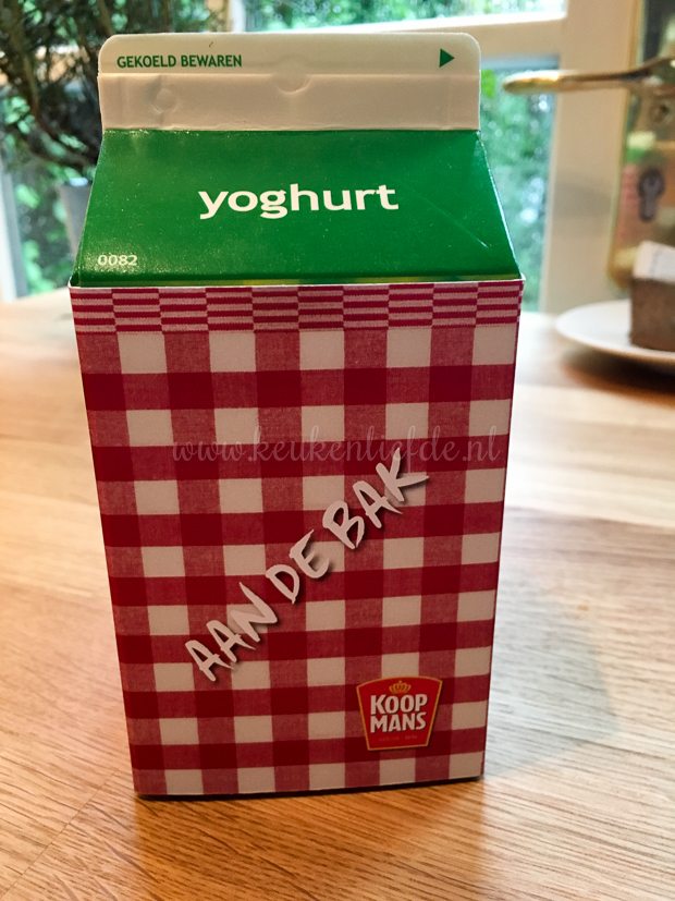 Ik krijg een pak yoghurt thuisbezorgd met een boodschap erop.