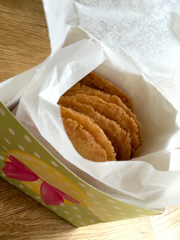 Ella-Marie en ik hebben zin om koekjes te bakken. Niet veel later ligt er een vracht knapperige roomboterkoekjes voor onze neus. Als we ’s middags op bezoek gaan bij de overgrootmoeder van Ella-Marie pakken we er een paar in om mee te nemen.
