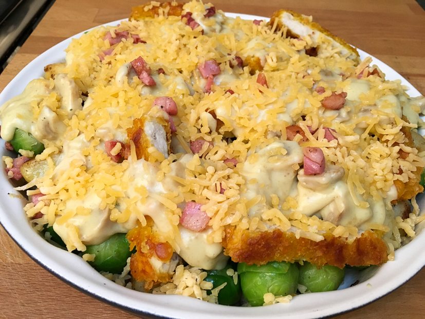 Voor het avondeten maak ik een nieuwe ovenschotel met krieltjes, spruitjes, spekjes, kipschnitzelreepjes en champignonsaus. Wauw! Ik probeer het recept zo snel mogelijk met je te delen, want deze wil je maken!