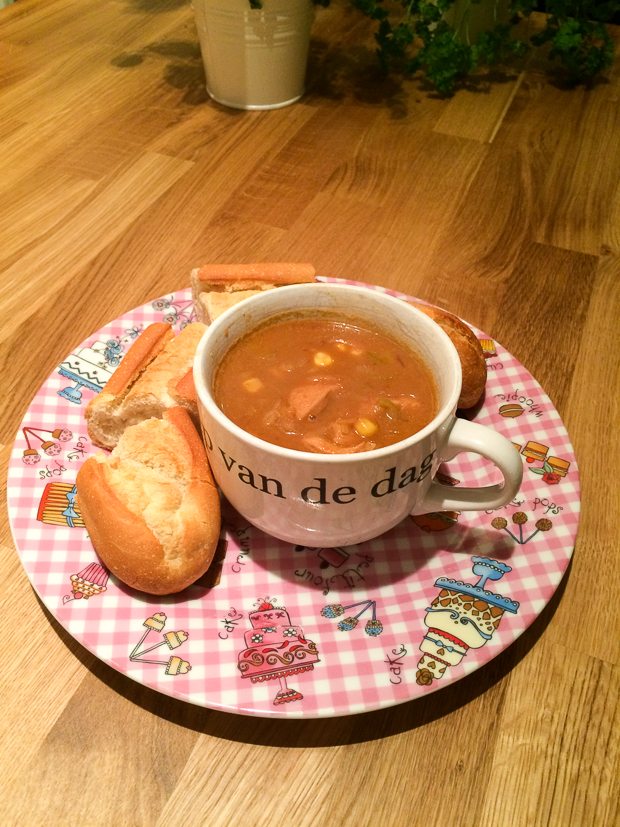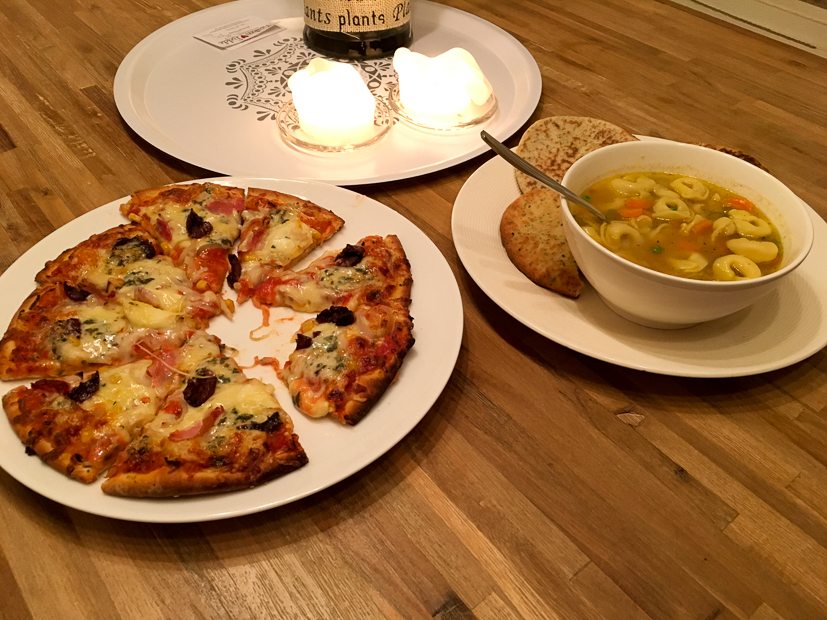 Ella-Marie heeft voorjaarsvakantie en logeert een nachtje bij mijn ouders. Johan eet ’s avonds een kommetje soep (haha! — recept volgt binnenkort) en ik eet een diepvriespizzaatje. Prima maaltje voor een inspiratieloze maandag.