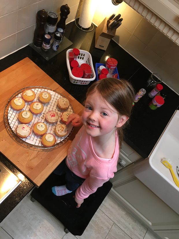 Ik heb een paar dagen vrij gepland om leuke dingen te doen met Ella-Marie. En onder leuk verstaan wij bakken! Cupcakes met botercrème dit keer.
