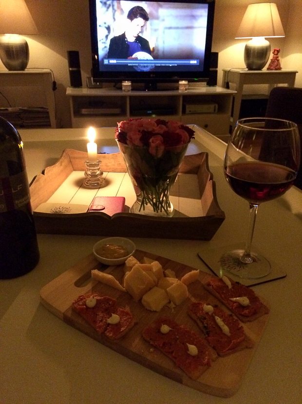 Nog later op de avond — als Ella-Marie op bed ligt — genieten Johan en ik van een plankje lekkers, terwijl we naar onze favoriete Netflix-serie kijken: White Collar.