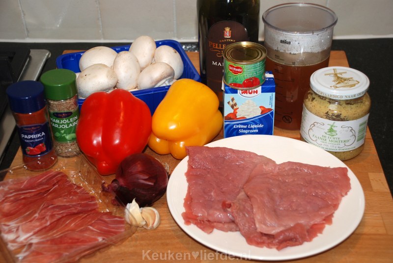 Schnitzelrolletjes met parmaham en Madeirasaus