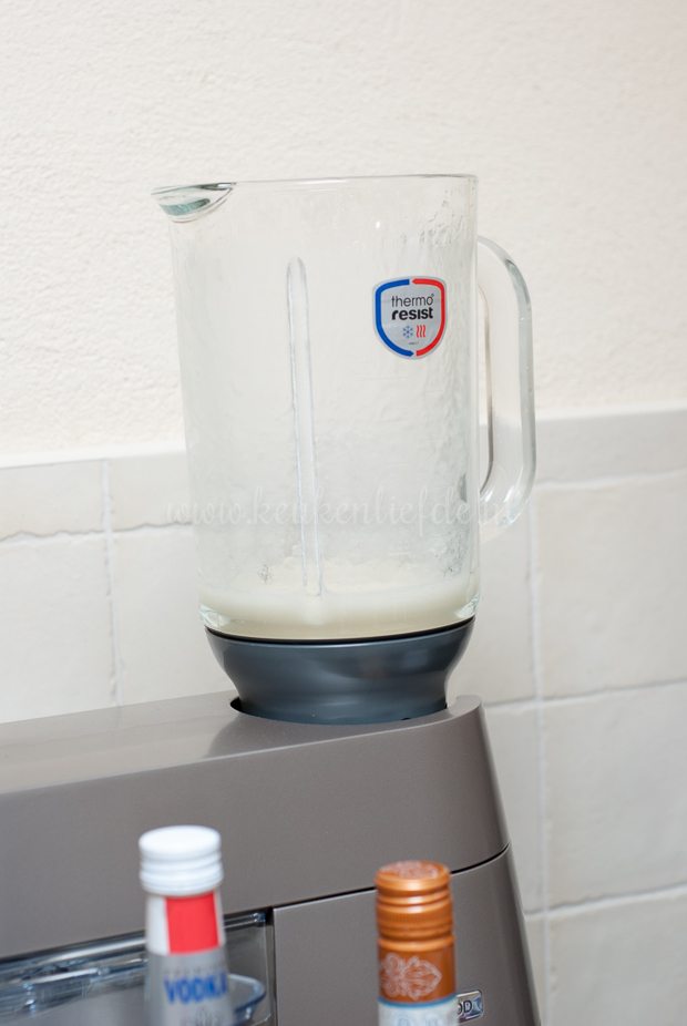 Doe alle ingrediënten in de blender en mix glad. Schenk in twee (gekoelde) champagneglazen en serveer direct.