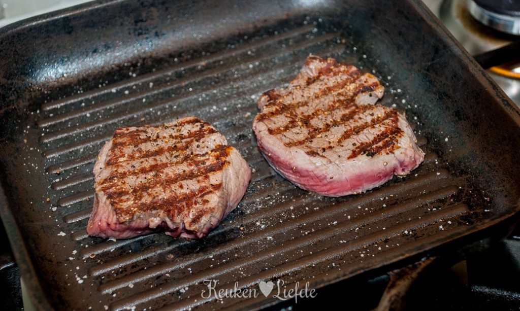 - 2 biefstukjes van circa 125 gram, op kamertemperatuur