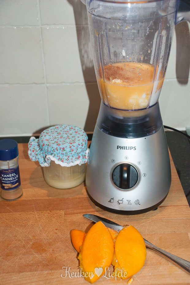 Wat zonde dat je de sinaasappels uitperst! Je kunt de hele sinaasappels, zonder de oranje schil natuurlijk ;), gewoon in de blender gooien. Op deze manier heb je al lekker veel vezels te pakken en je merkt er echt niets van.