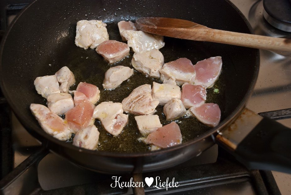 - 1 kipfilet, in middelgrote blokjes gesneden