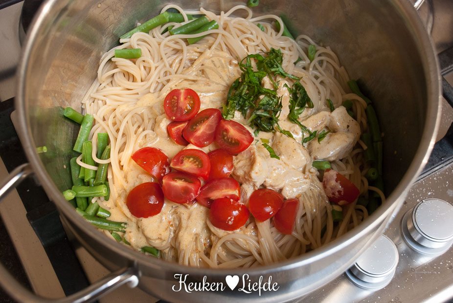 Speels & Smakelijk: spaghetti met kip en sperziebonen