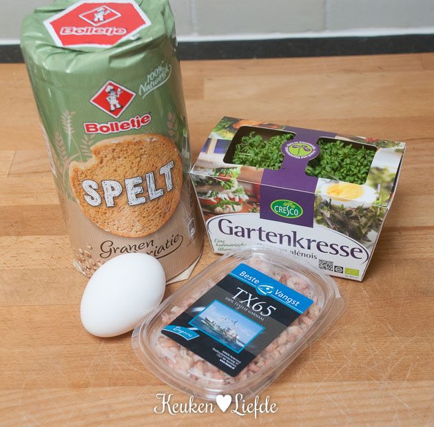 Wat kun je daarmee maken? Meer dan je zou denken, en ook sneller. Ik maakte een lunch van speltbeschuit met roerei, Hollandse garnalen en tuinkers.