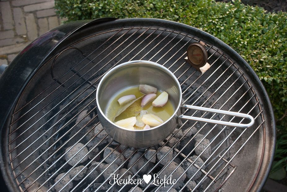 Als je dit gerecht op een kolenbarbecue maakt, steek hem dan alvast aan.