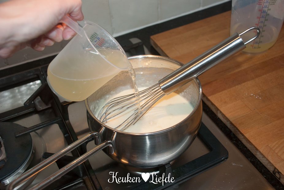 Kookpan met deksel, steelpan, bakpapier, vershoudfolie, maatbeker, vergiet, kwastje om te bestrijken