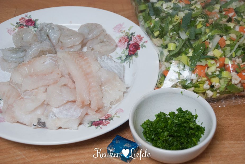 Toch kon ik het niet laten om mijn kookhandjes te laten wapperen. Ik wilde de kabeljauws eer aan doen en verwerkte ze daarom samen met wat garnalen in een smakelijke ovenschotel, afgetopt met fluweelzachte aardappelpureetorentjes. Smullen, smullen, smullen!