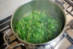 Voeg dan de spinazie en zout en peper toe en bak al roerend verder, totdat de spinazie geslonken is.
