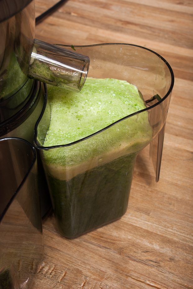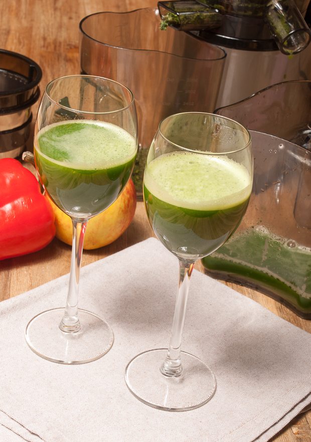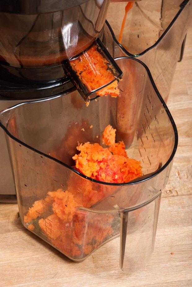 Een aantal jaren geleden maakte ik voor het eerst kennis met een sapcentrifuge — niet hetzelfde overigens als een slowjuicer; Linda legt zometeen het verschil uit. Voor dit sterrenrecept had ik snijbonensap nodig en omdat ik niet aan Jonnie Boer durfde te vragen of ik het sap door iets anders kon vervangen, kocht ik een sapcentrifuge. Een aanwinst, zo bleek achteraf, want vanaf dat moment toverde ik in een handomdraai de lekkerste zelfgemaakte fruit- en groentesapjes op tafel. Helaas kleefden er twee grote nadelen aan de sapcentrifuge: hij was enorm groot en een ramp om schoon te maken. Hij belandde op een stoffig schap in de kelder en niemand keek meer naar hem om …