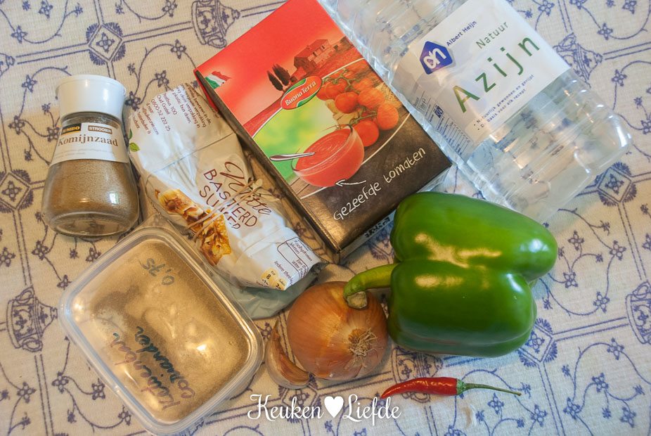 - 1 groene paprika, zaadlijst verwijderd en in kleine blokjes gesneden