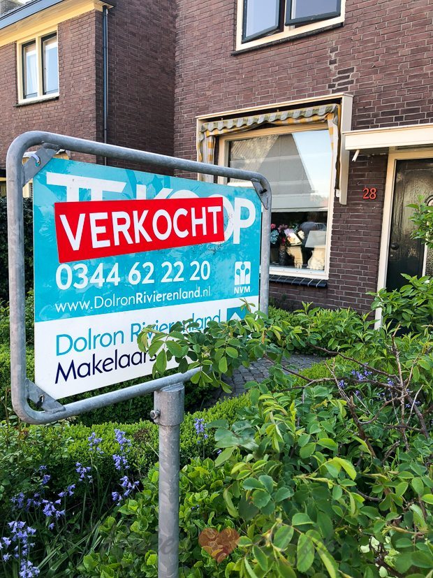 Voor ons gevoel duurde het een eeuwigheid, maar uiteindelijk ging het toch best snel: begin maart verkochten we ons huis en vandaag plakt de makelaar ein-de-lijk de sticker ‘verkocht’ op het bord in de tuin. Eindelijk is het officieel!