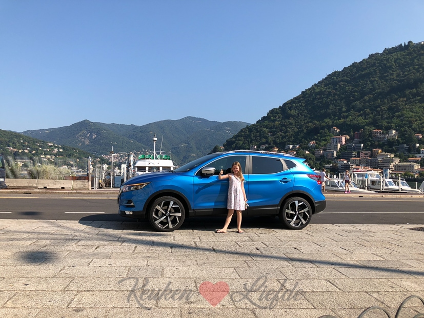 Eindelijk! Onze vakantie begint! We stappen al heel vroeg in de auto — van Nissan mochten de twee weken lang een prachtig blauwe Qashqai lenen — en rijden naar Italië. We verbleven twee weken op twee verschillende campings in Italië. Hier vind je het uitgebreide vakantieverslag. Omdat de eerste camping in Toscane ruim twaalf uur rijden is, maken we een tussenstop met overnachting aan het Comomeer.