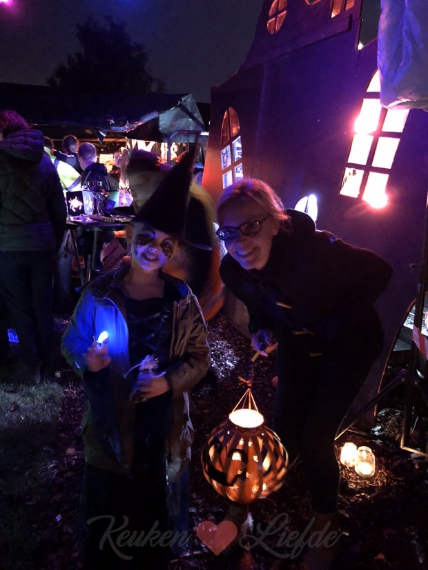 Na het eten schmink ik Ella-Marie want vanavond is er een Halloween-optocht door het dorp!