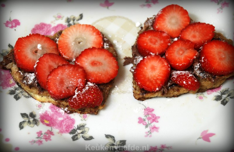 Valentijnsontbijt! Hartjestoast met aardbeien