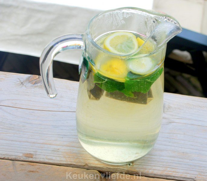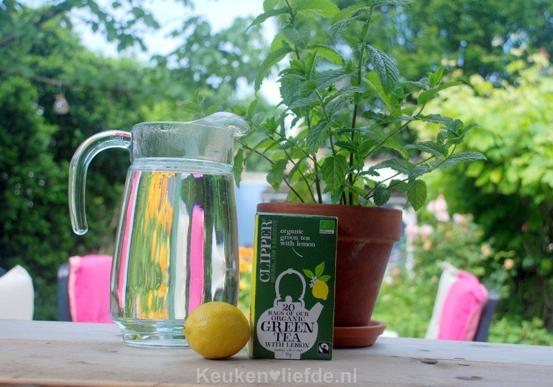 Op warme zomerdagen staat er bij ons in de koelkast altijd een grote kan van deze verkwikkende groene-ijsthee, klaar om in te schenken. Heel makkelijk om te maken en ontzettend lekker!