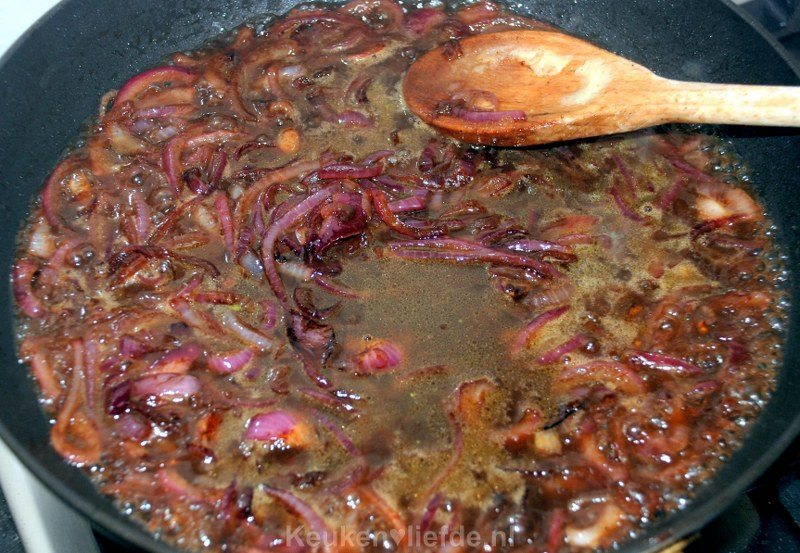 Je hebt niet altijd vlees nodig om een lekkere jus te kunnen maken. In dit recept wordt rode ui gebruikt als basis voor een heerlijke en smaakvolle jus, die bovendien makkelijk en snel te maken is. Erg lekker bij aardappelpuree en een stukje vlees.