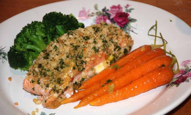 Een simpel maar ontzettend lekker gerecht is deze zalmfilet met knapperige peterselie-broodkruimkorst uit de oven. Bak de zalm niet te ver door, dan wordt hij droog en minder lekker. Lekker met gekookte wortels en of broccoli en gebakken krieltjes erbij.