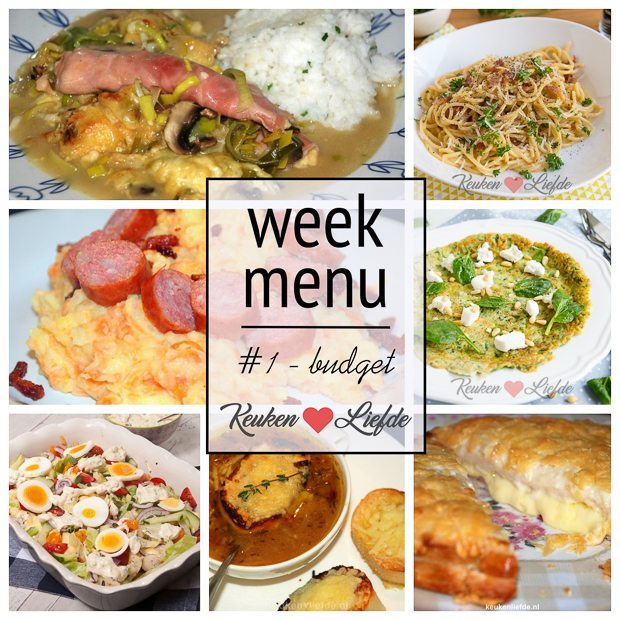 Voorheen deelde ik op zondag altijd een overzicht met de best bekeken recepten van afgelopen week, maar omdat die recepten vaak hetzelfde zijn werd dat een beetje saai. Tijd voor iets nieuws! Op Facebook vroeg ik wat jullie zouden vinden van een weekmenu en ik werd overspoeld met positieve reacties. Daarom deel ik vanaf vandaag iedere week een weekmenu, samengesteld door mij, Johan of Ella-Marie. Uit de reacties op Facebook blijkt dat er veel behoefte is aan verschillende thema’s en daarom zal ik regelmatig een bepaald thema belichten. Deze week is het thema ‘budget’. Ik laat je zien dat je met weinig geld toch heel lekker en gevarieerd een week lang kunt eten.
