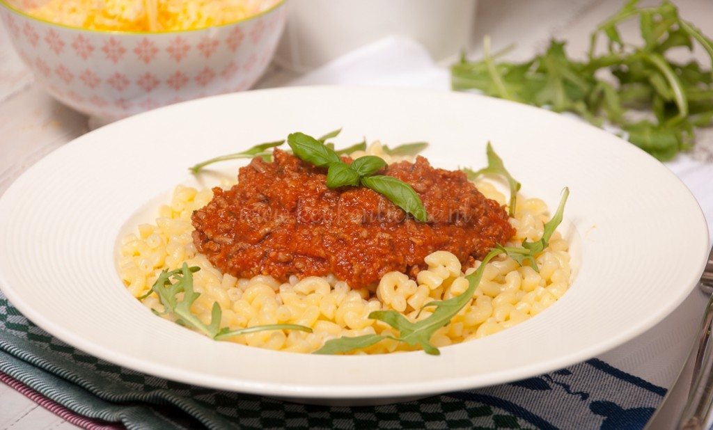 Ik ben dol op bolognesaus. Ik bereid hem net zoals stoofvlees en laat hem enkele uren op een sudderplaatje pruttelen. Dan wordt hij hemels lekker! Maar vooruit, mocht je daar vandaag geen tijd voor hebben, na een half uurtje pruttelen smaakt deze saus ook fantastisch. ? Serveer met spaghetti of met macaroni en eventueel een salade.