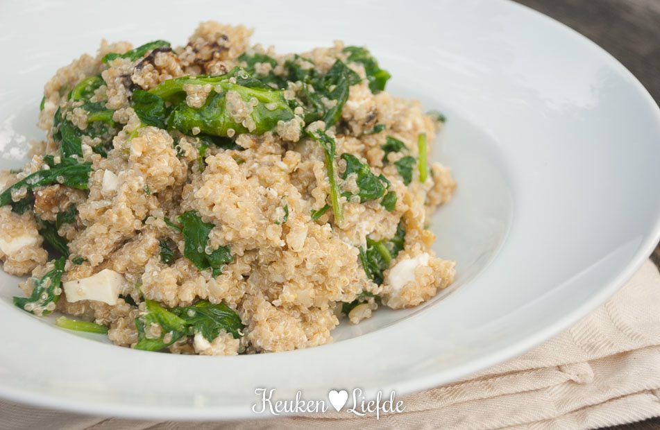 Joehoe, het is maandag en dus tijd voor Lekker Snel! Deze quinoasalade met spinazie, feta en gegrilde aubergine is vegetarisch, verrukkelijk en staat in 20 minuten op tafel! De spinazie die je overhoud kun je bewaren voor het pastagerecht dat morgen op het menu staat.